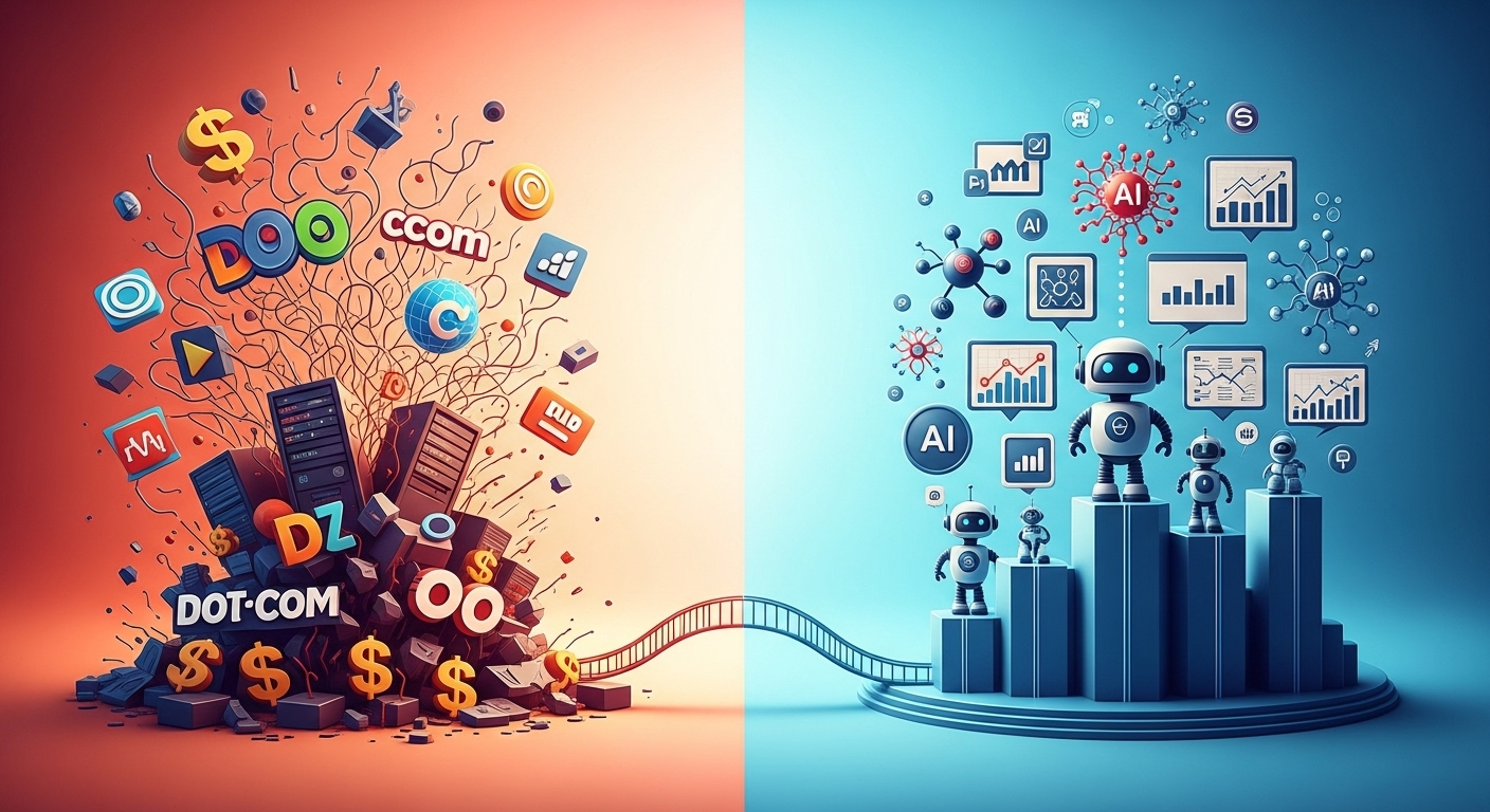 A2: AI는 단순 유행을 넘어 산업 전반의 생산성을 높이는 근본적 기술 혁명이라는 점에서 닷컴 버블과 차이가 큽니다.